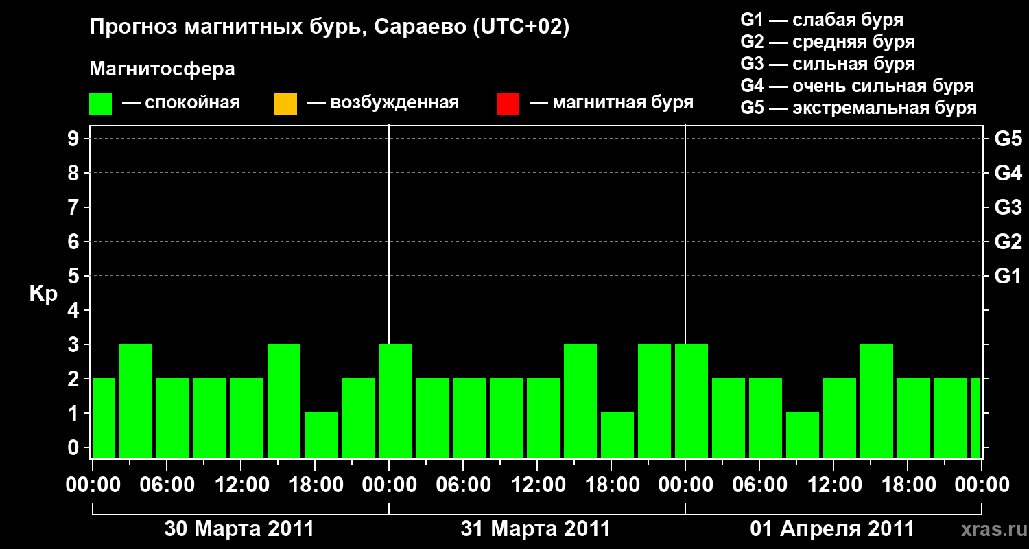 Прогноз магнитных бурь Сараево — 30 марта 2011 года