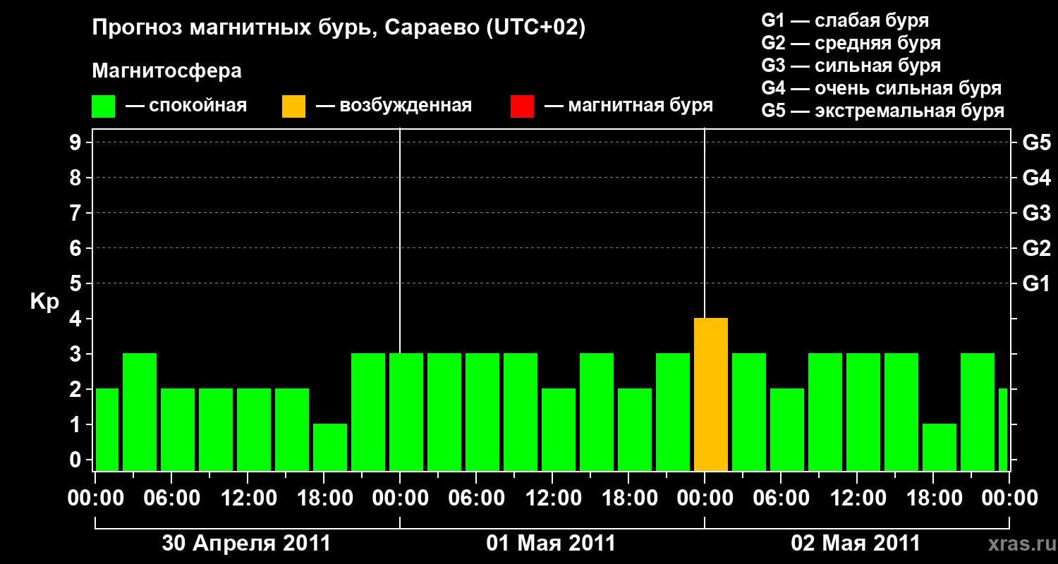 Прогноз магнитных бурь Сараево — 30 апреля 2011 года