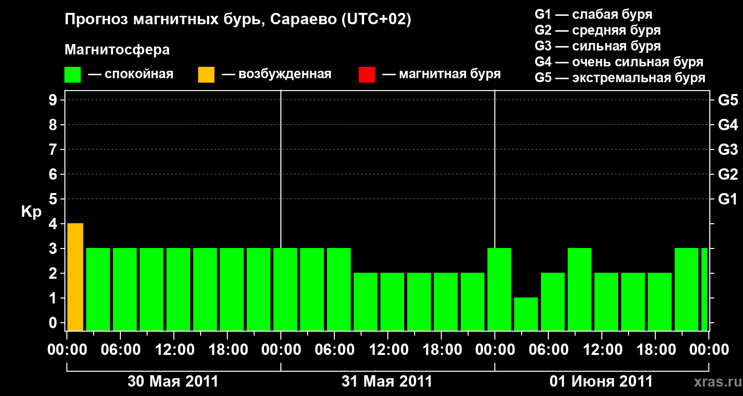 Прогноз магнитных бурь Сараево — 30 мая 2011 года