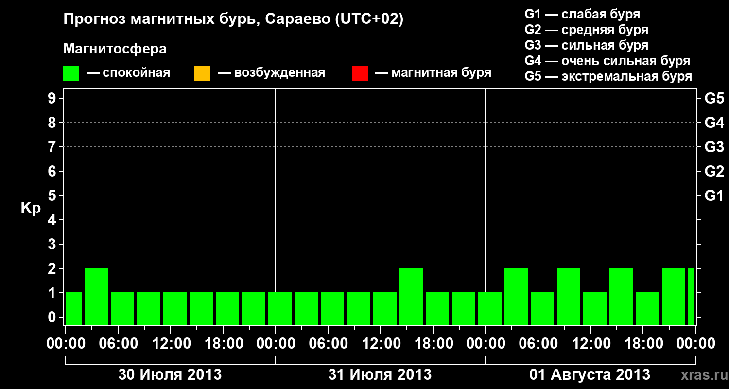 Прогноз магнитных бурь Сараево — 30 июля 2013 года