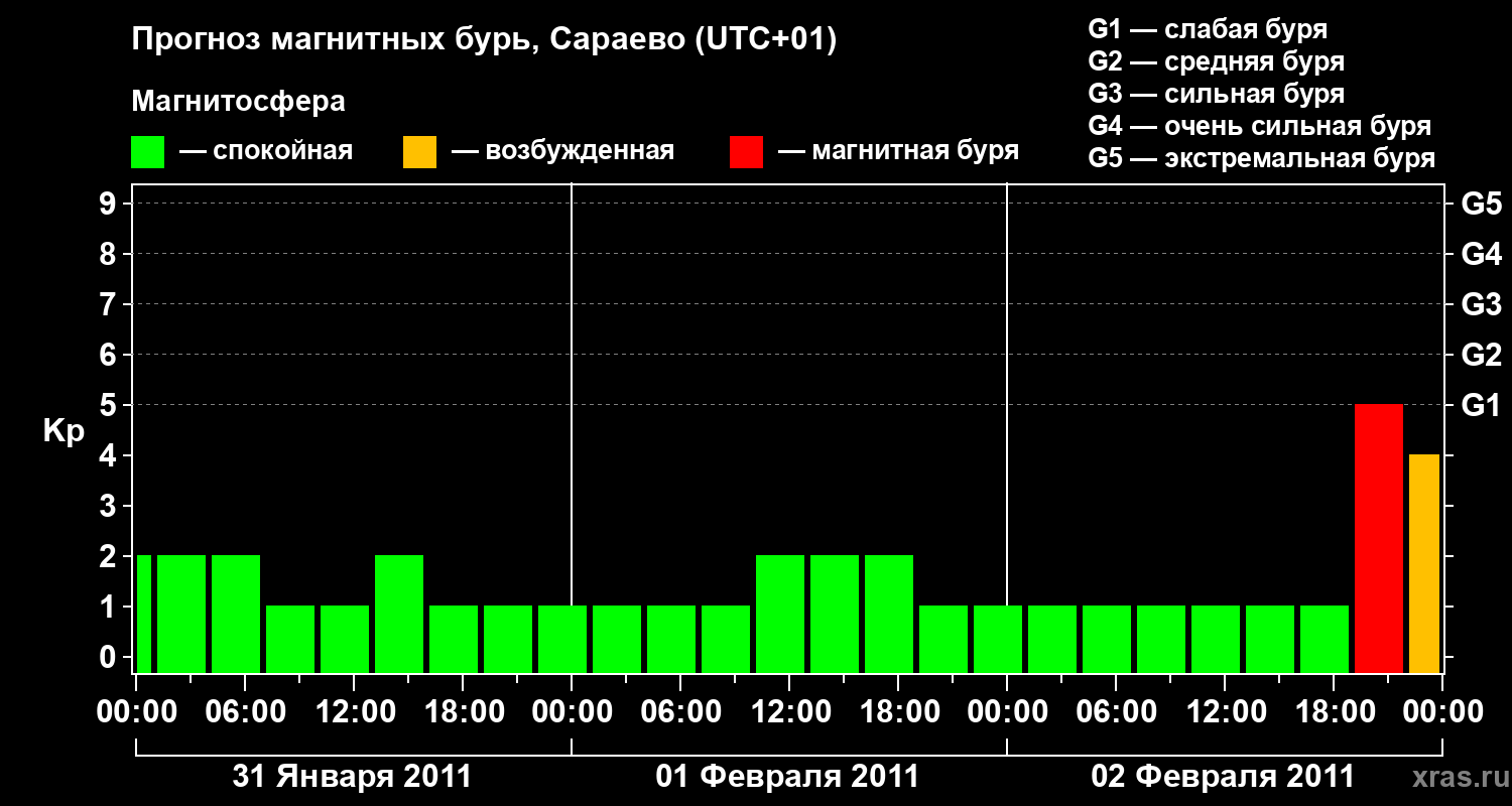 Прогноз магнитных бурь Сараево — 31 января 2011 года