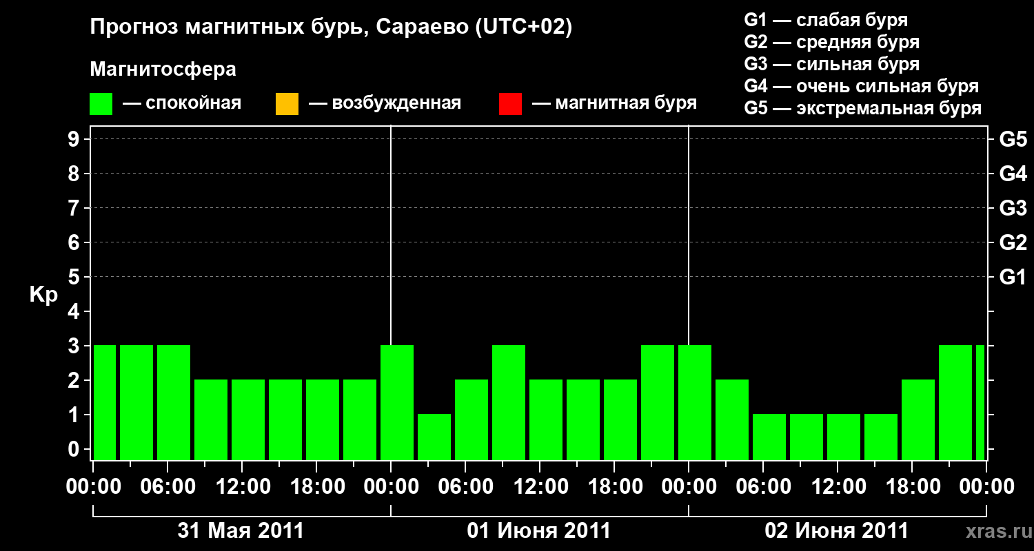 Прогноз магнитных бурь Сараево — 31 мая 2011 года