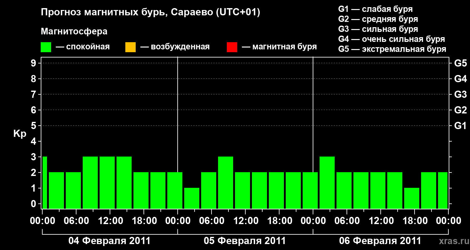 Прогноз магнитных бурь Сараево — 4 февраля 2011 года