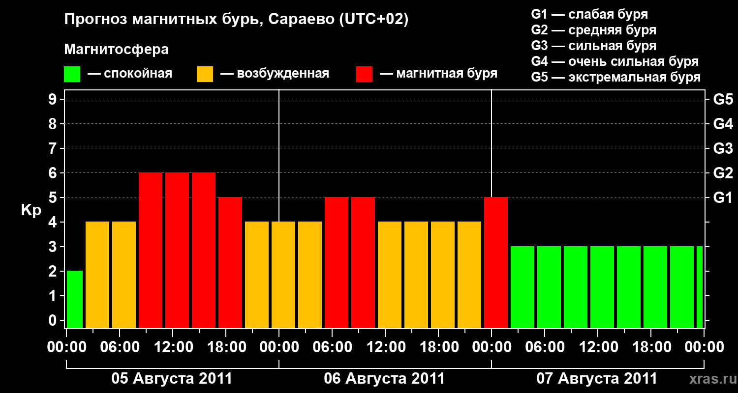 Прогноз магнитных бурь Сараево — 5 августа 2011 года