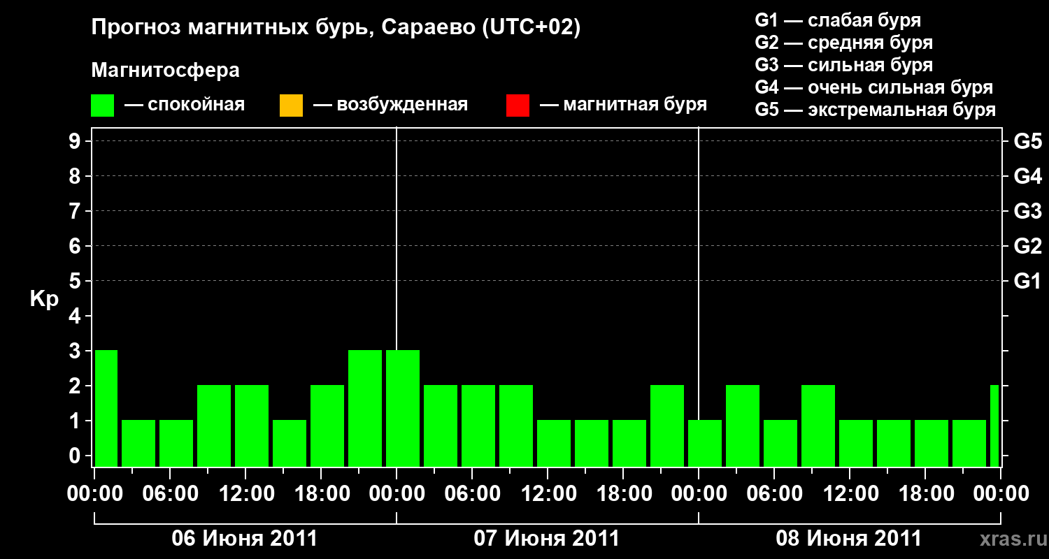 Прогноз магнитных бурь Сараево — 6 июня 2011 года