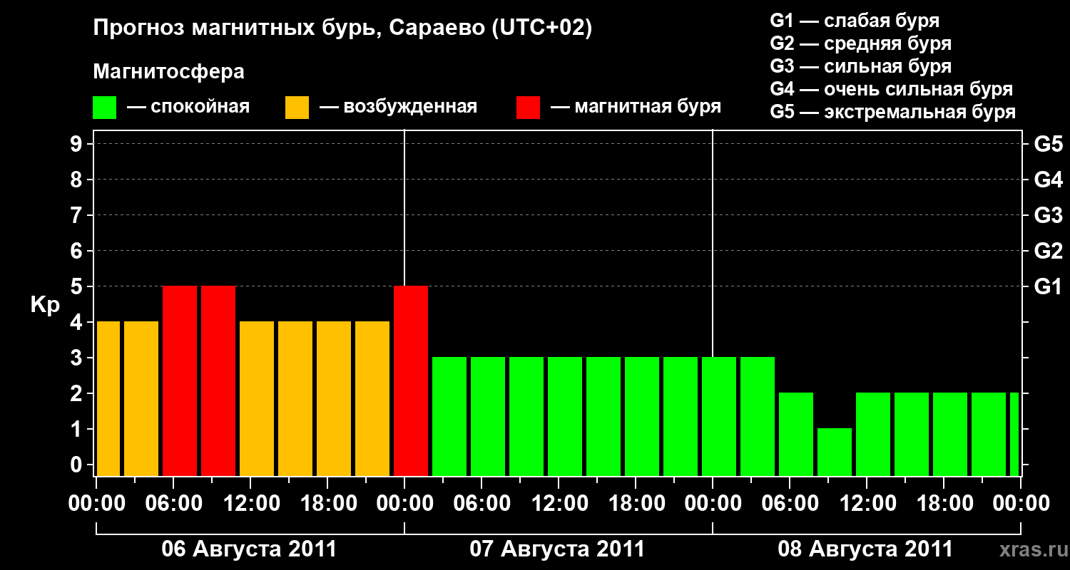 Прогноз магнитных бурь Сараево — 6 августа 2011 года
