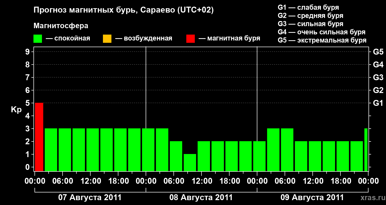 Прогноз магнитных бурь Сараево — 7 августа 2011 года