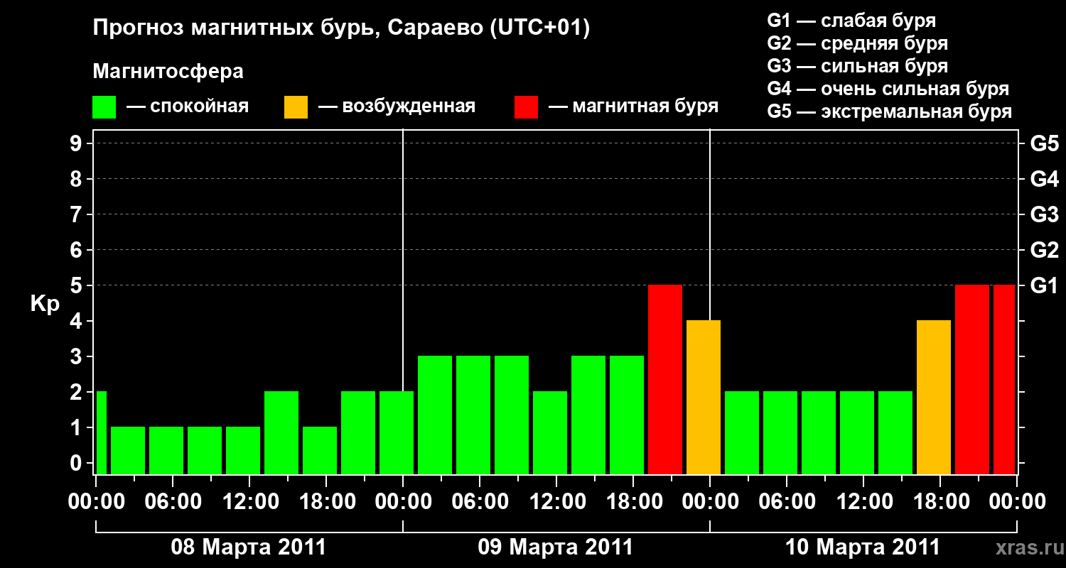 Прогноз магнитных бурь Сараево — 8 марта 2011 года