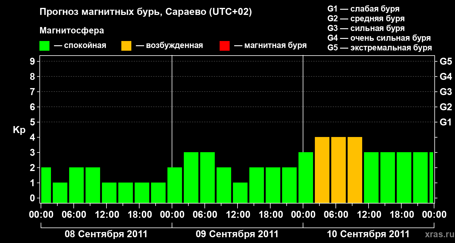 Прогноз магнитных бурь Сараево — 8 сентября 2011 года