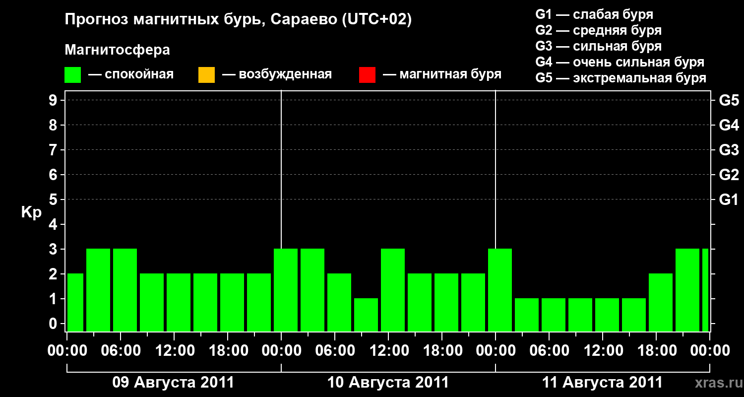Прогноз магнитных бурь Сараево — 9 августа 2011 года