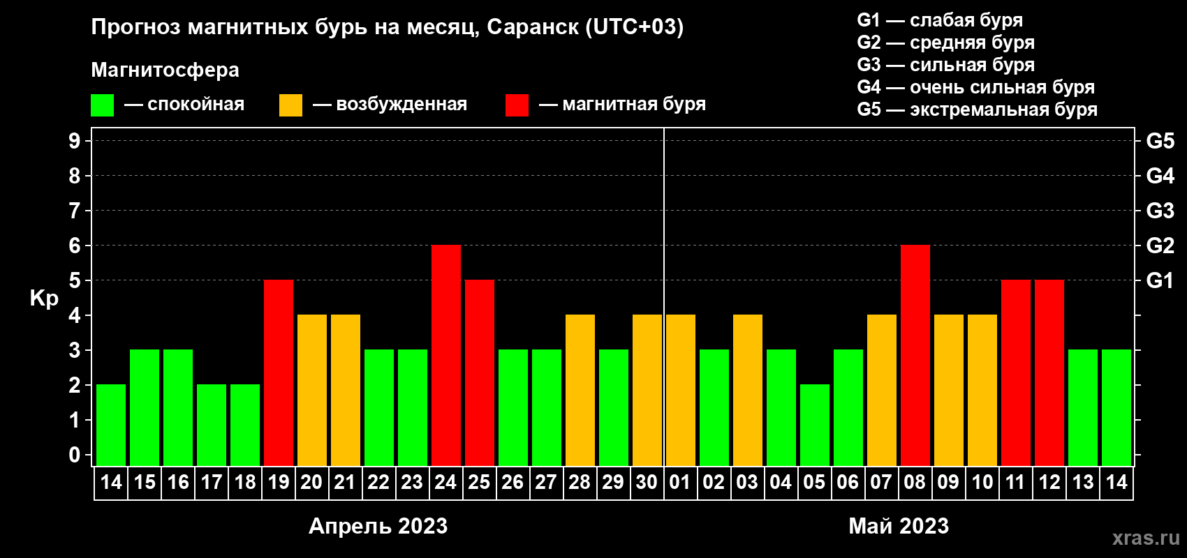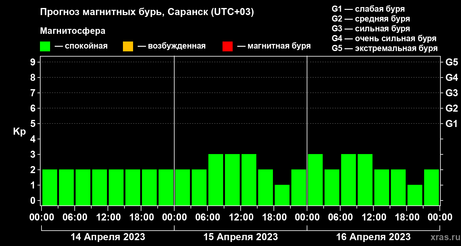 Прогноз магнитных бурь в Саранске — 14 апреля 2023 года