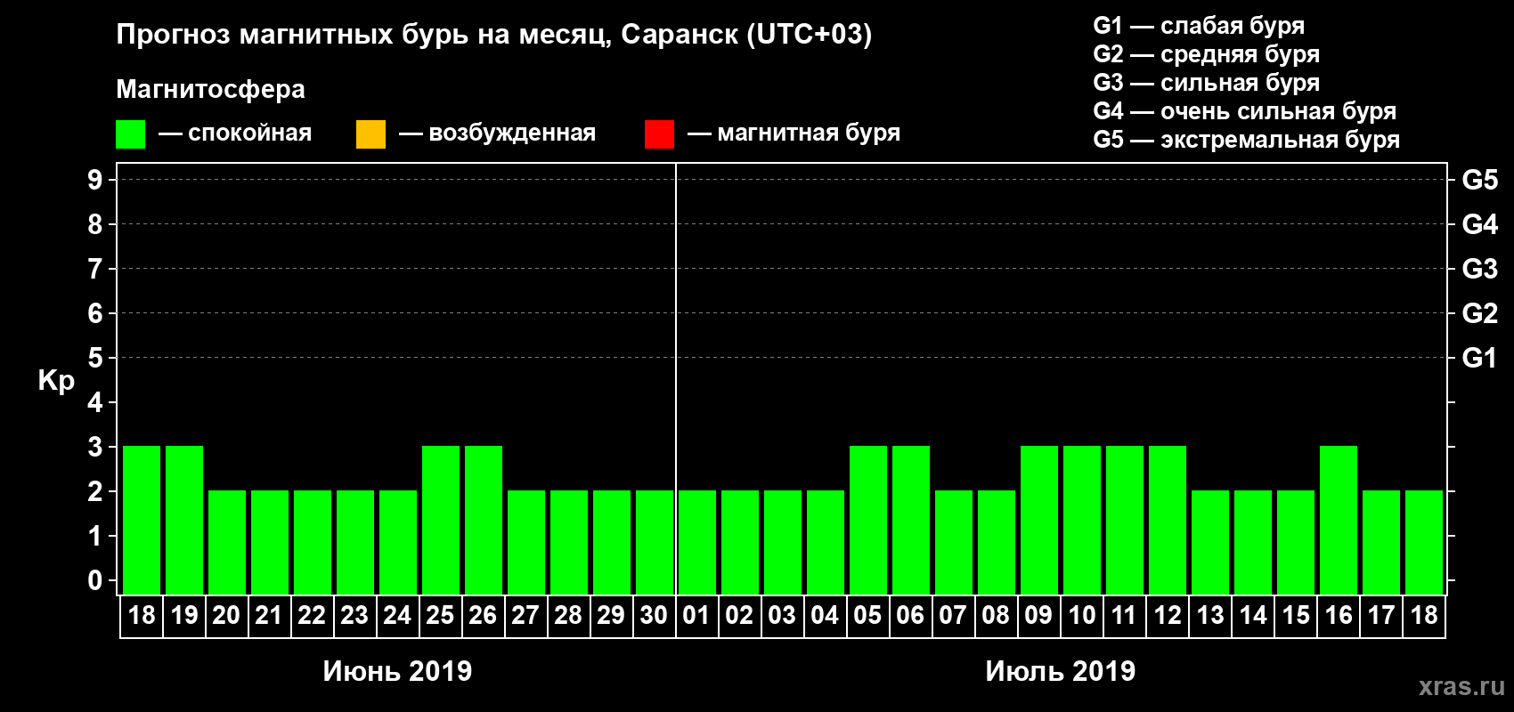 Прогноз магнитных бурь в Саранске — 18 июня 2019 года
