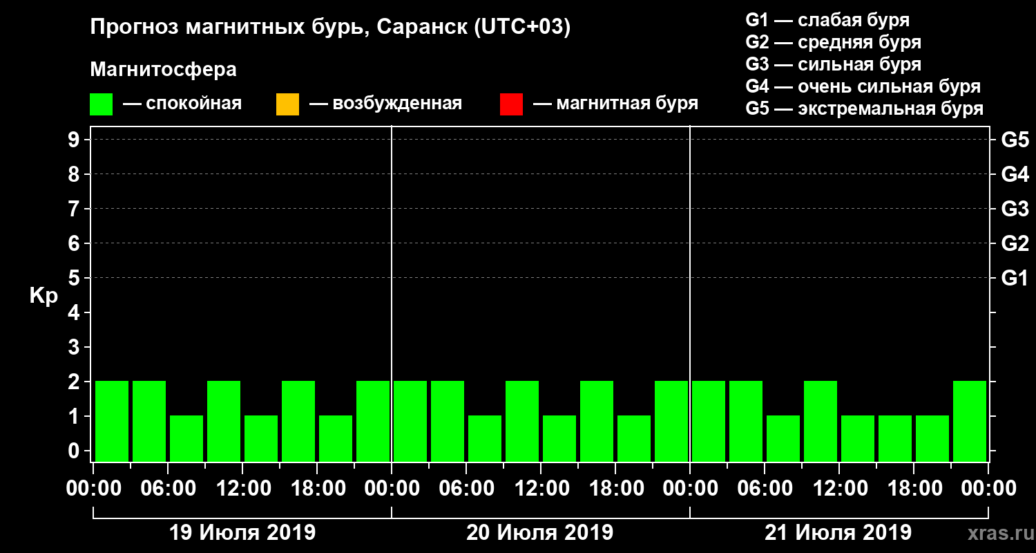 Прогноз магнитных бурь в Саранске — 19 июля 2019 года
