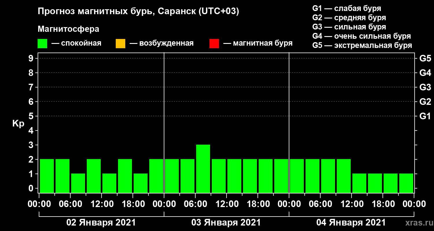 Прогноз магнитных бурь в Саранске — 2 января 2021 года
