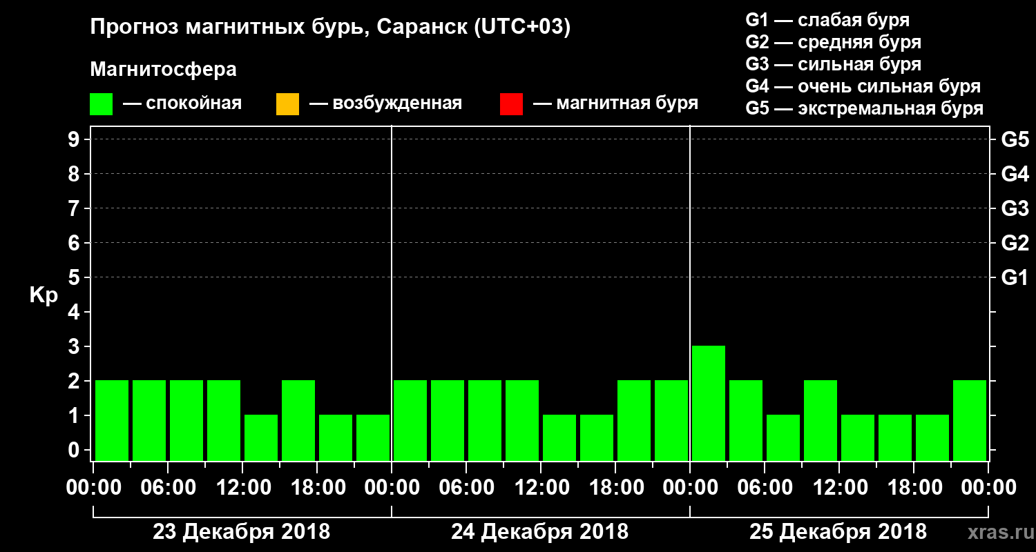 Прогноз магнитных бурь в Саранске — 23 декабря 2018 года
