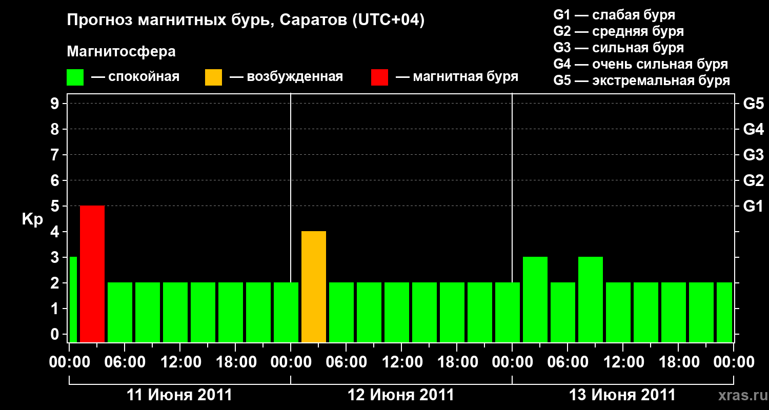 Прогноз магнитных бурь в Саратове — 11 июня 2011 года