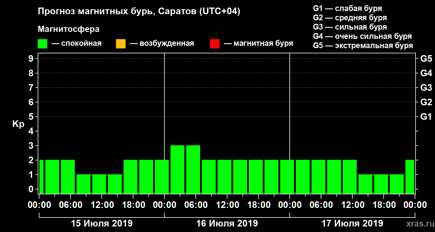 Прогноз магнитных бурь в Саратове — 15 июля 2019 года