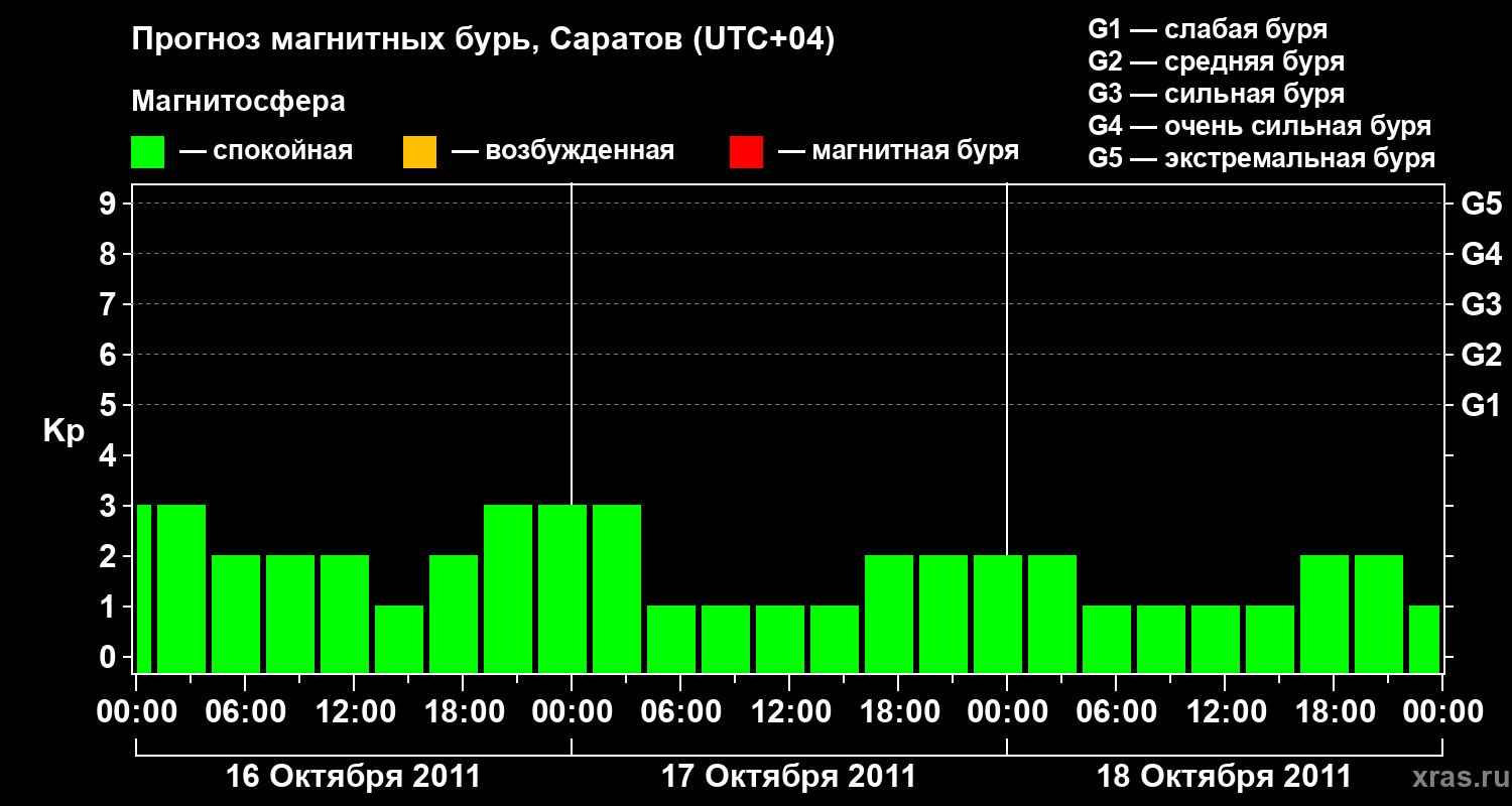 Прогноз магнитных бурь в Саратове — 16 октября 2011 года