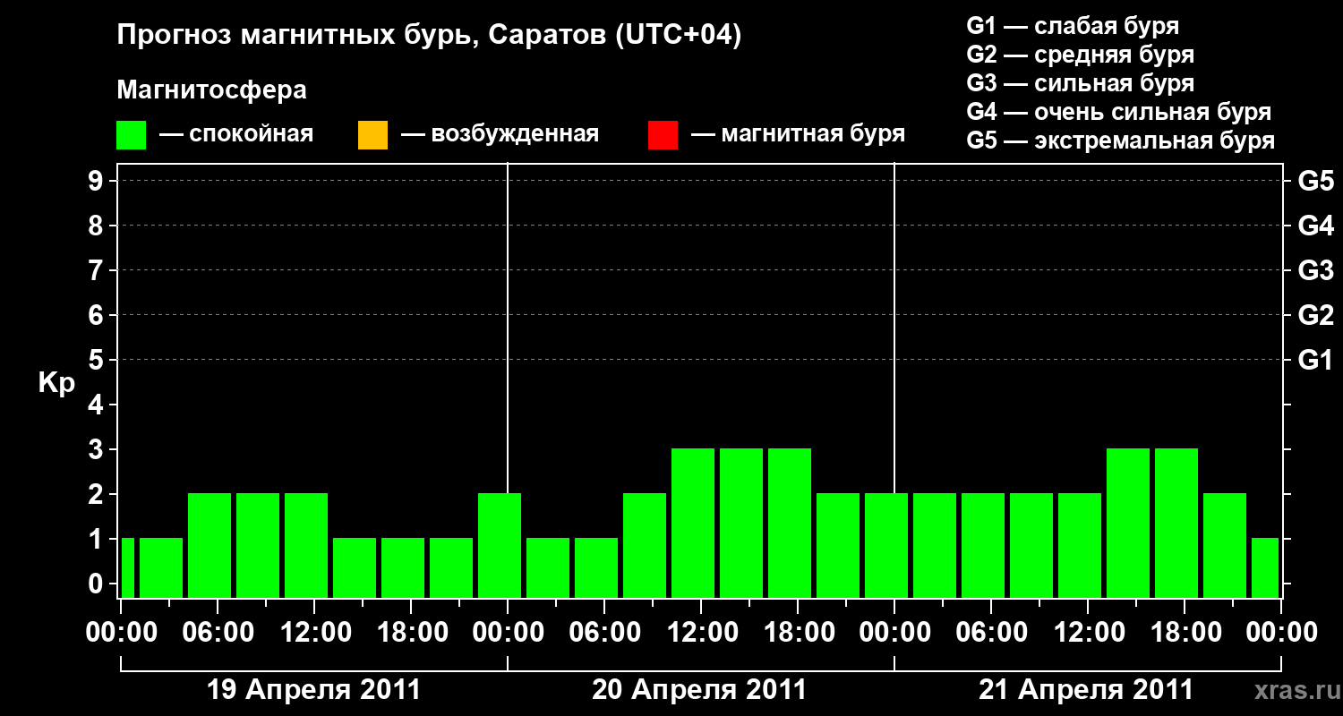 Прогноз магнитных бурь в Саратове — 19 апреля 2011 года