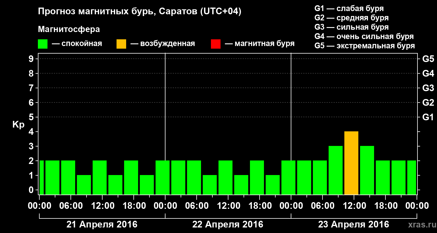 Прогноз магнитных бурь в Саратове — 21 апреля 2016 года