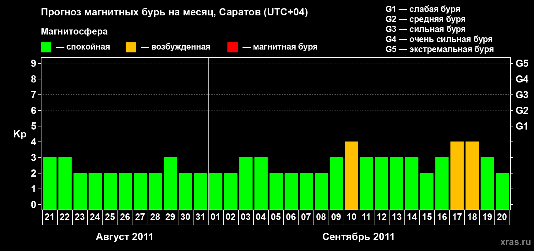 Прогноз магнитных бурь в Саратове — 21 августа 2011 года
