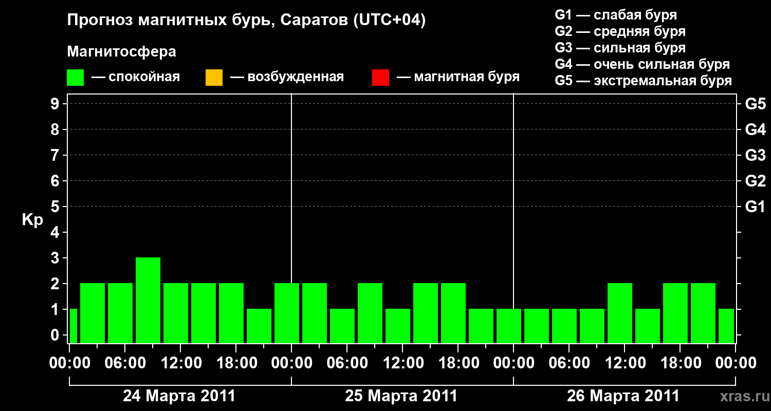 Прогноз магнитных бурь в Саратове — 24 марта 2011 года