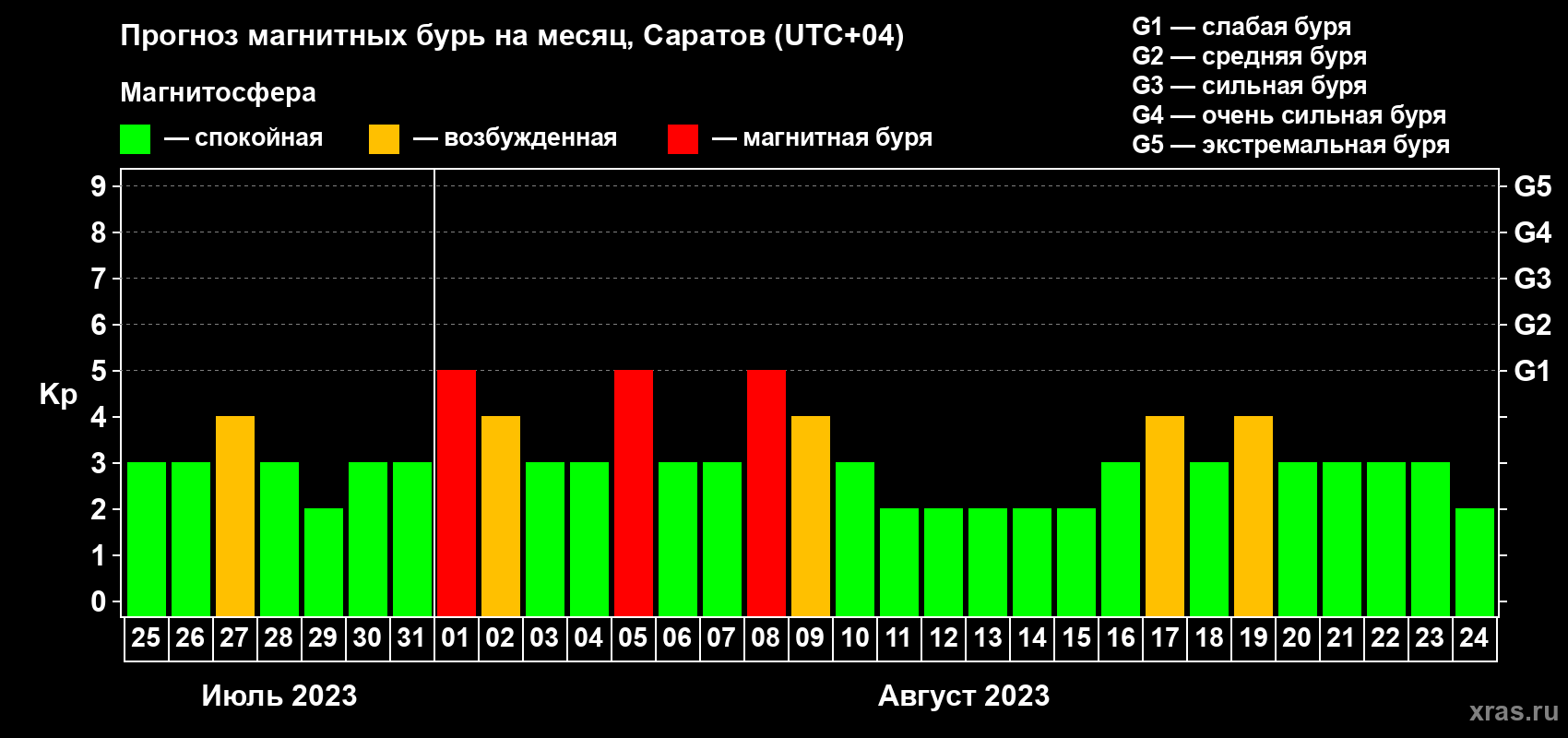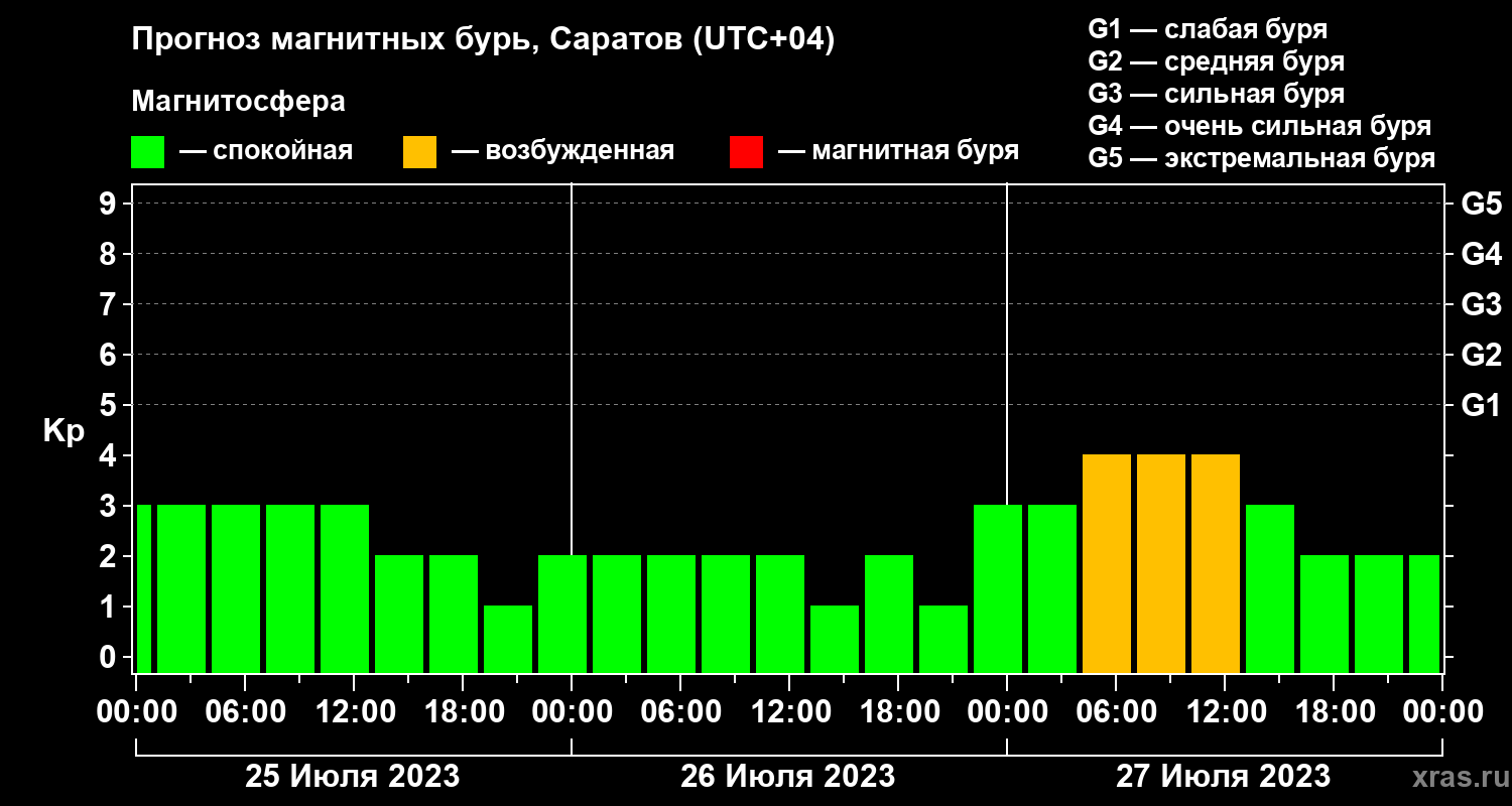 Прогноз магнитных бурь в Саратове на 25 июля 2023 года