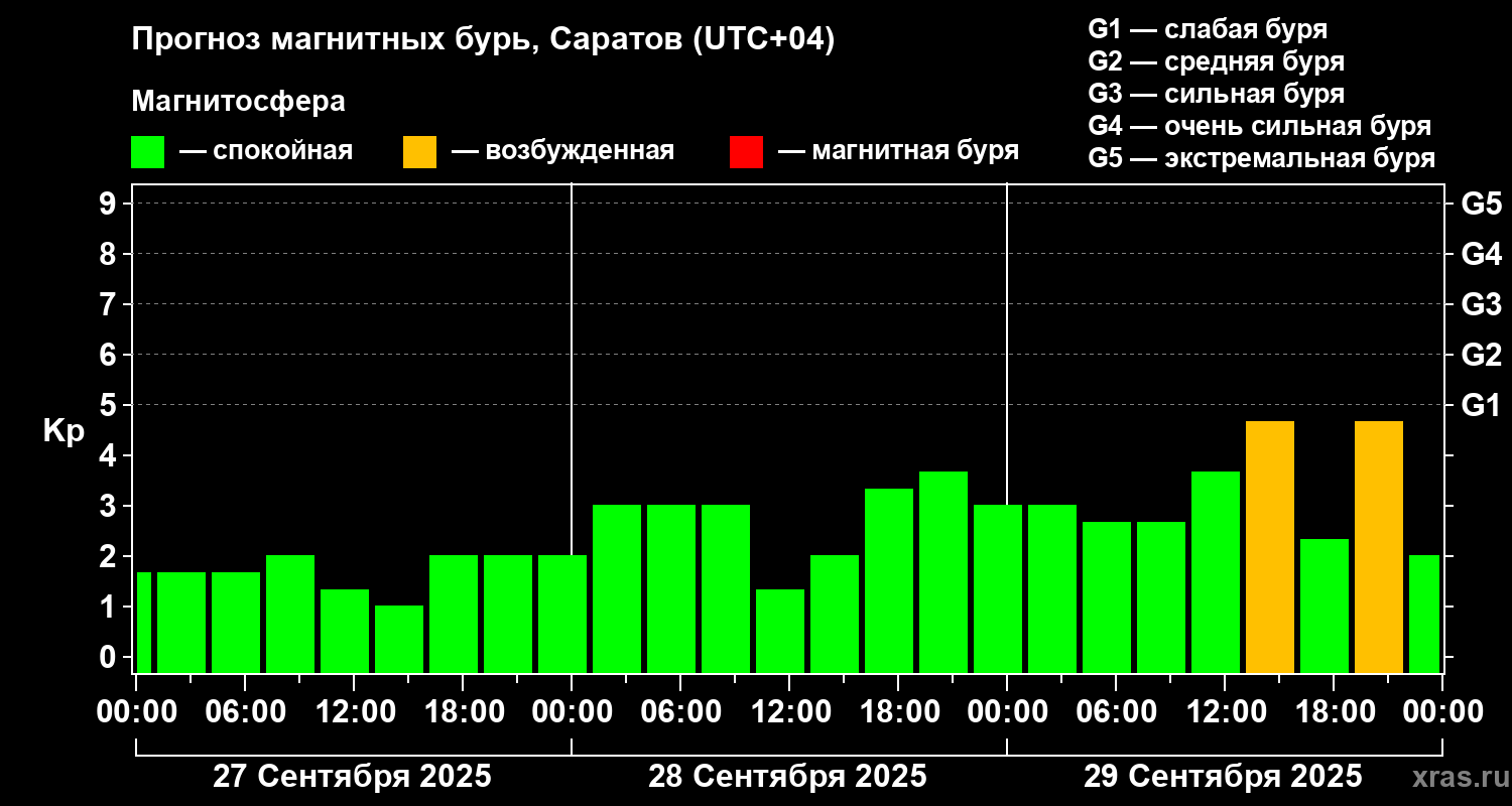 Прогноз магнитных бурь в Саратове на 27 сентября 2025 года