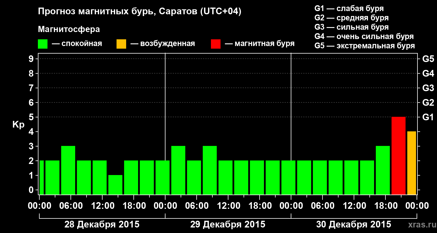 Прогноз магнитных бурь в Саратове на 28 декабря 2015 года