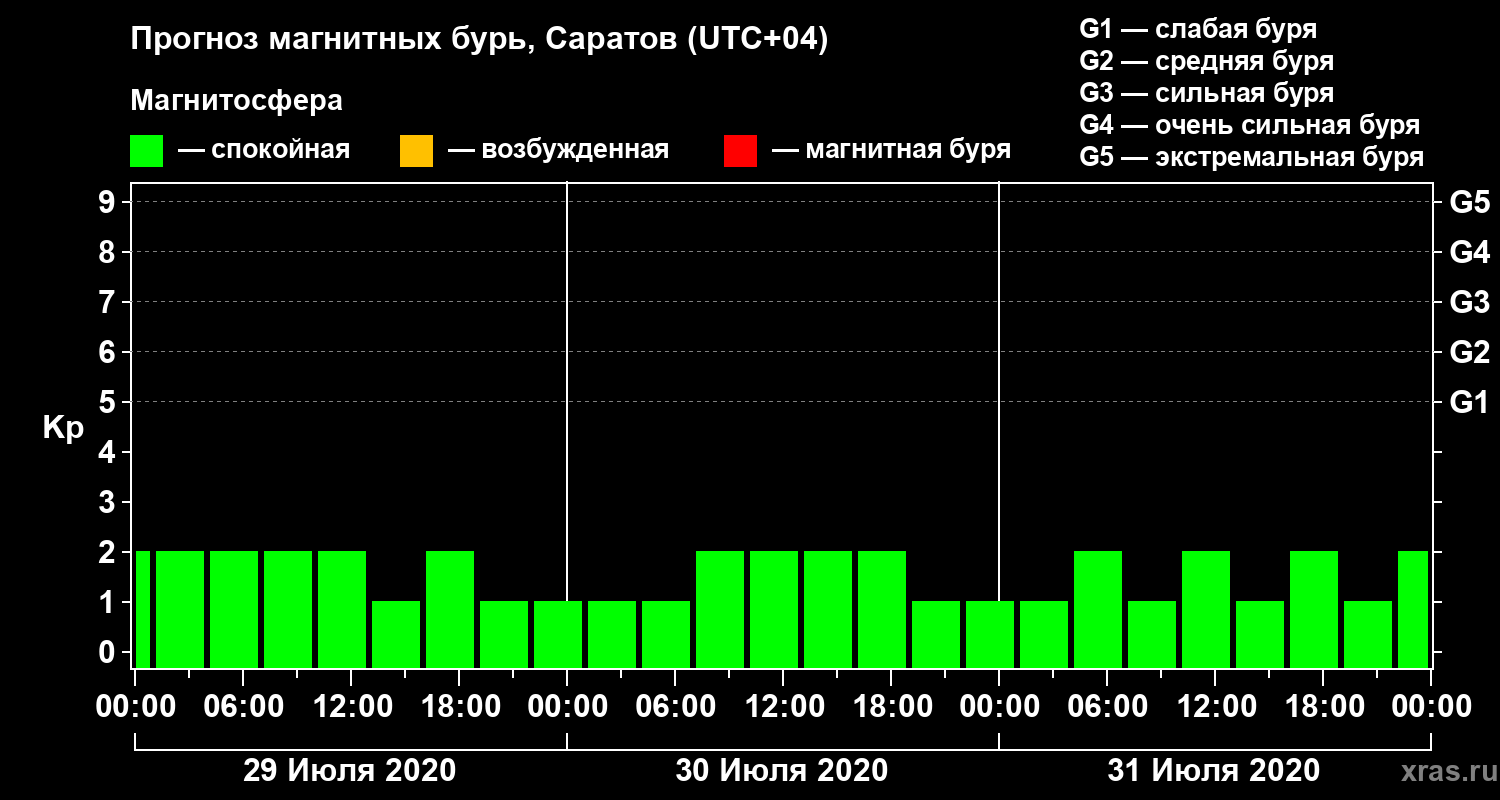 Прогноз магнитных бурь в Саратове на 29 июля 2020 года