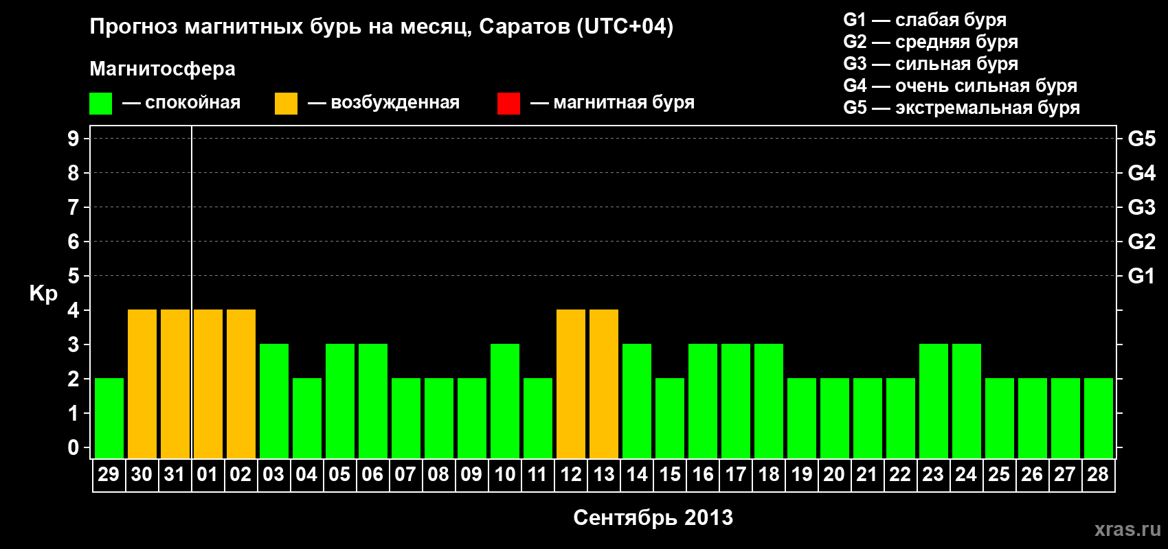 Прогноз магнитных бурь в Саратове — 29 августа 2013 года