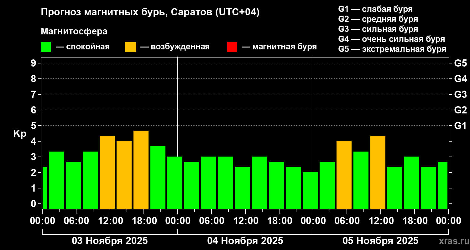 Прогноз магнитных бурь в Саратове — 3 ноября 2025 года