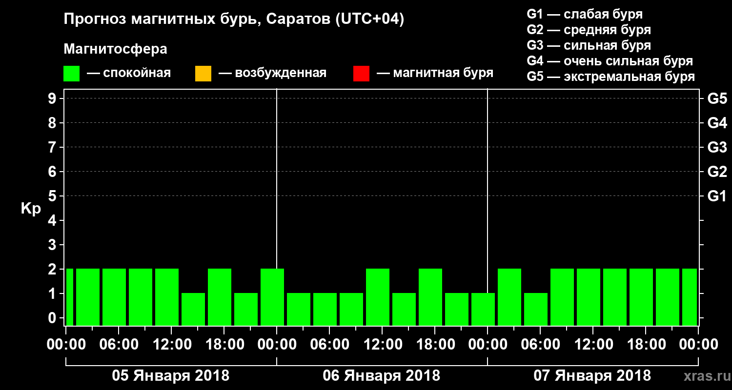 Прогноз магнитных бурь в Саратове — 5 января 2018 года