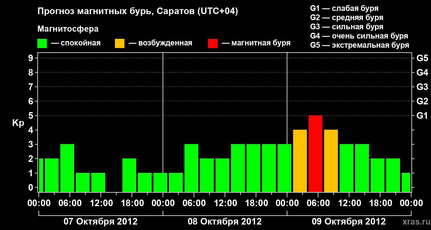 Прогноз магнитных бурь в Саратове — 7 октября 2012 года