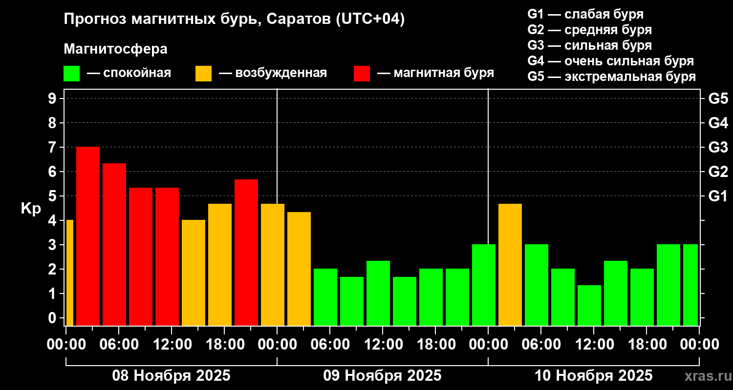 Прогноз магнитных бурь в Саратове — 8 ноября 2025 года