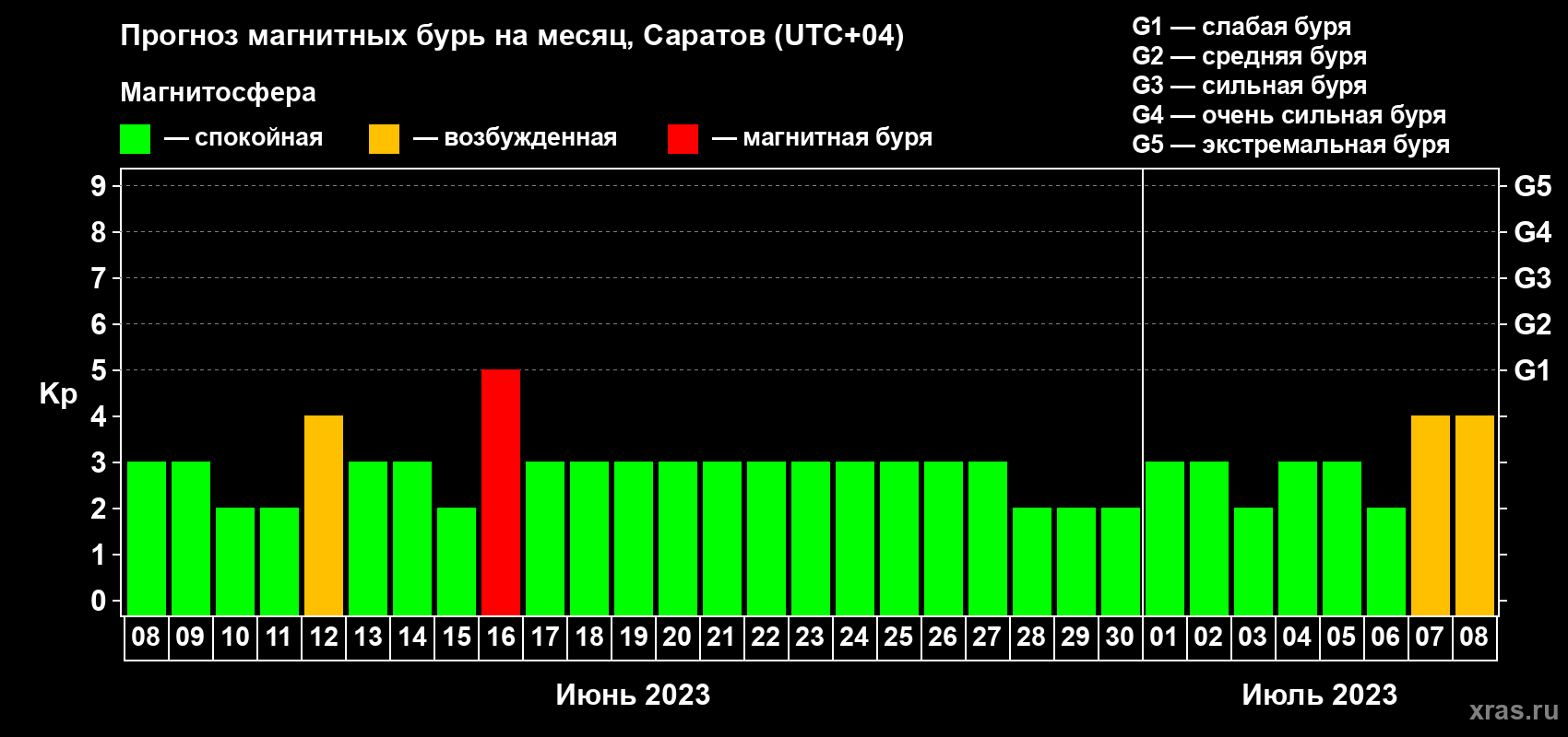 Прогноз магнитных бурь в Саратове на 8 июня 2023 года