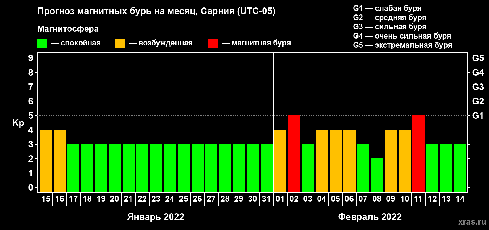 Прогноз магнитных бурь в Сарнии — 15 января 2022 года