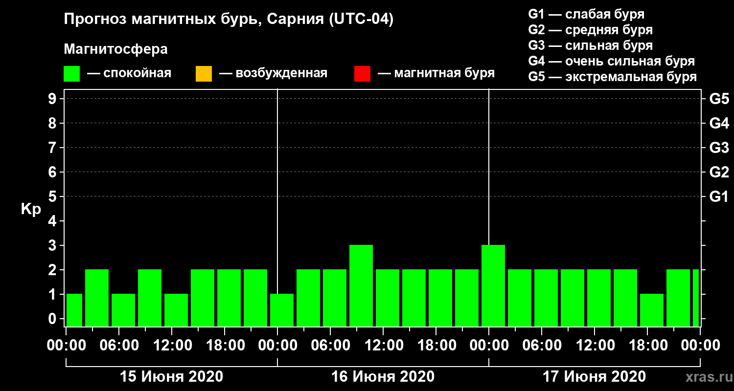 Прогноз магнитных бурь в Сарнии — 15 июня 2020 года