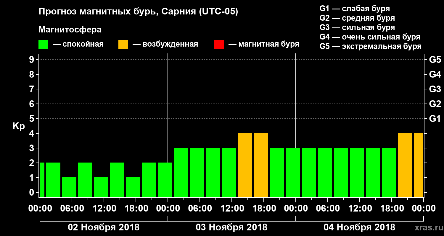 Прогноз магнитных бурь в Сарнии — 2 ноября 2018 года