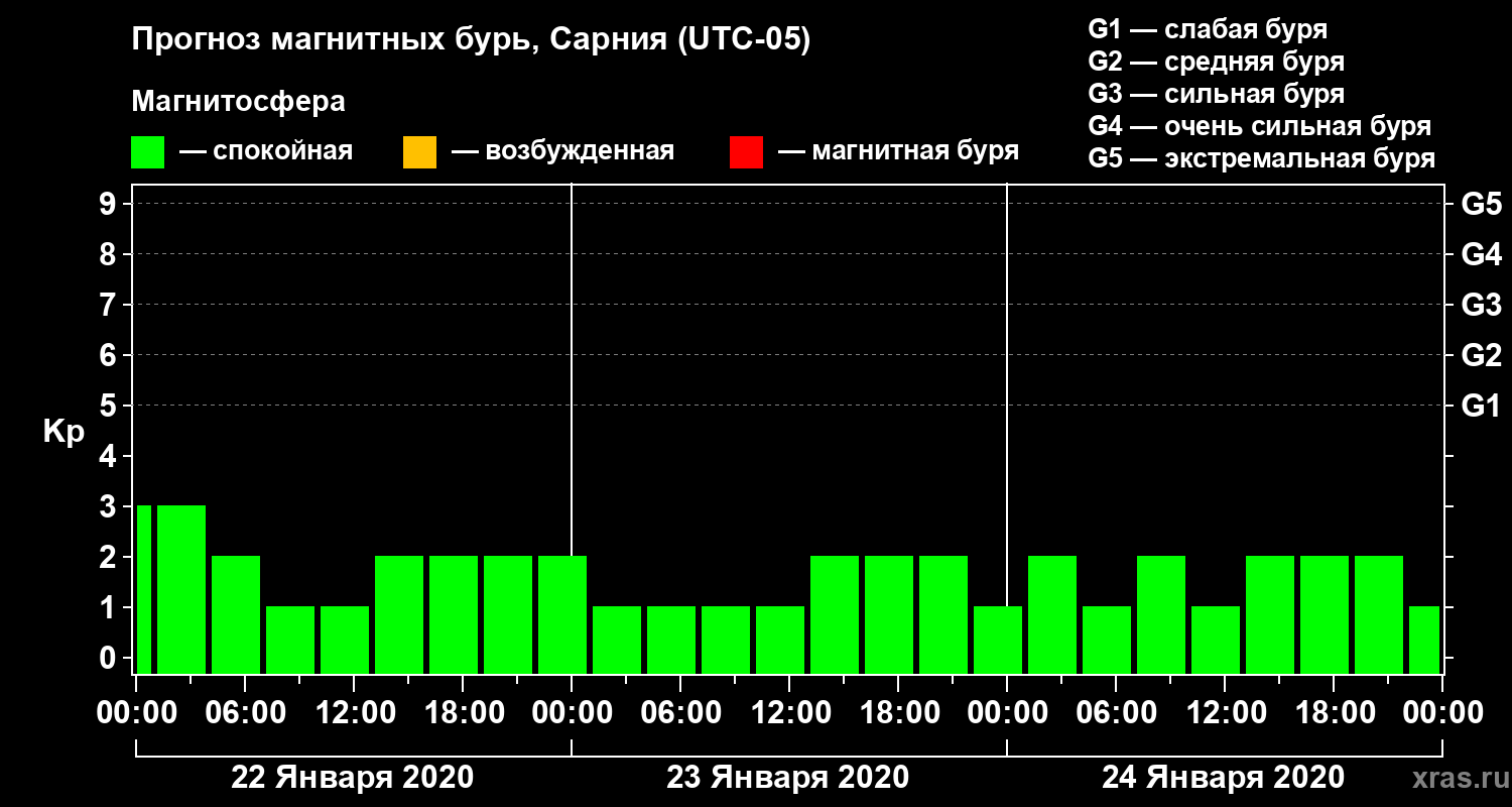 Прогноз магнитных бурь в Сарнии — 22 января 2020 года