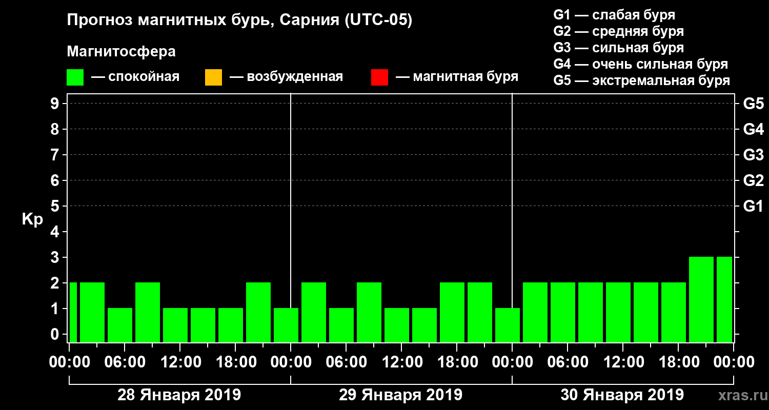 Прогноз магнитных бурь в Сарнии — 28 января 2019 года