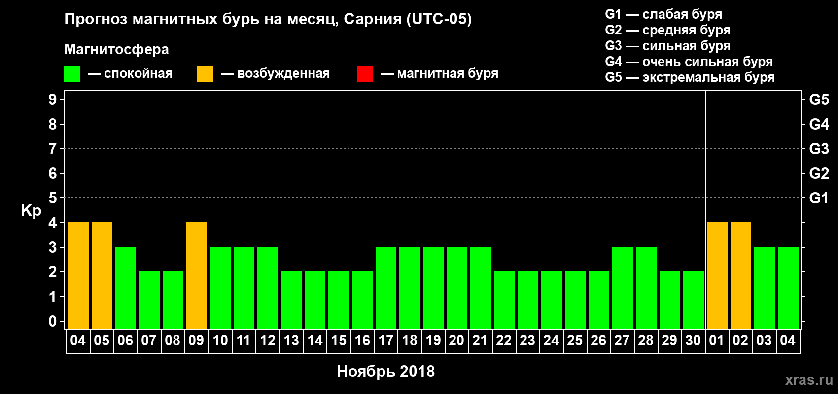 Прогноз магнитных бурь в Сарнии — 4 ноября 2018 года