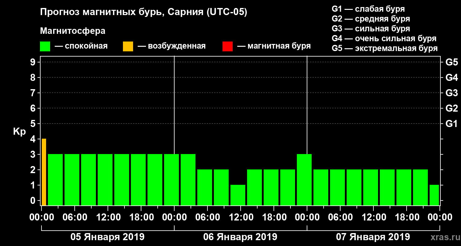 Прогноз магнитных бурь в Сарнии на 5 января 2019 года