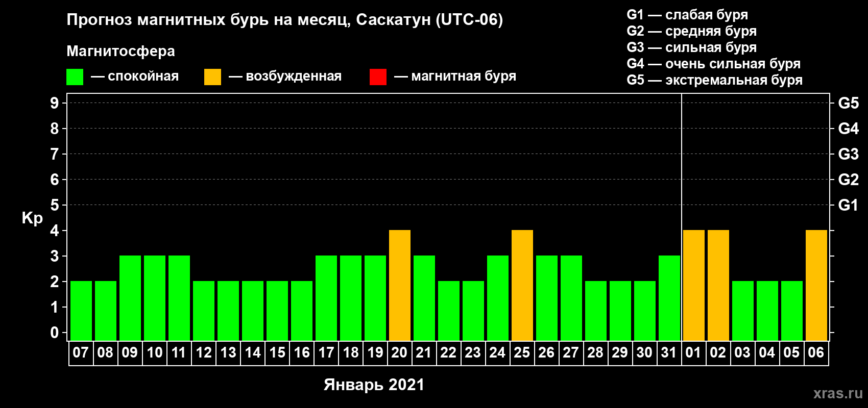 Прогноз магнитных бурь в Саскатуне — 7 января 2021 года