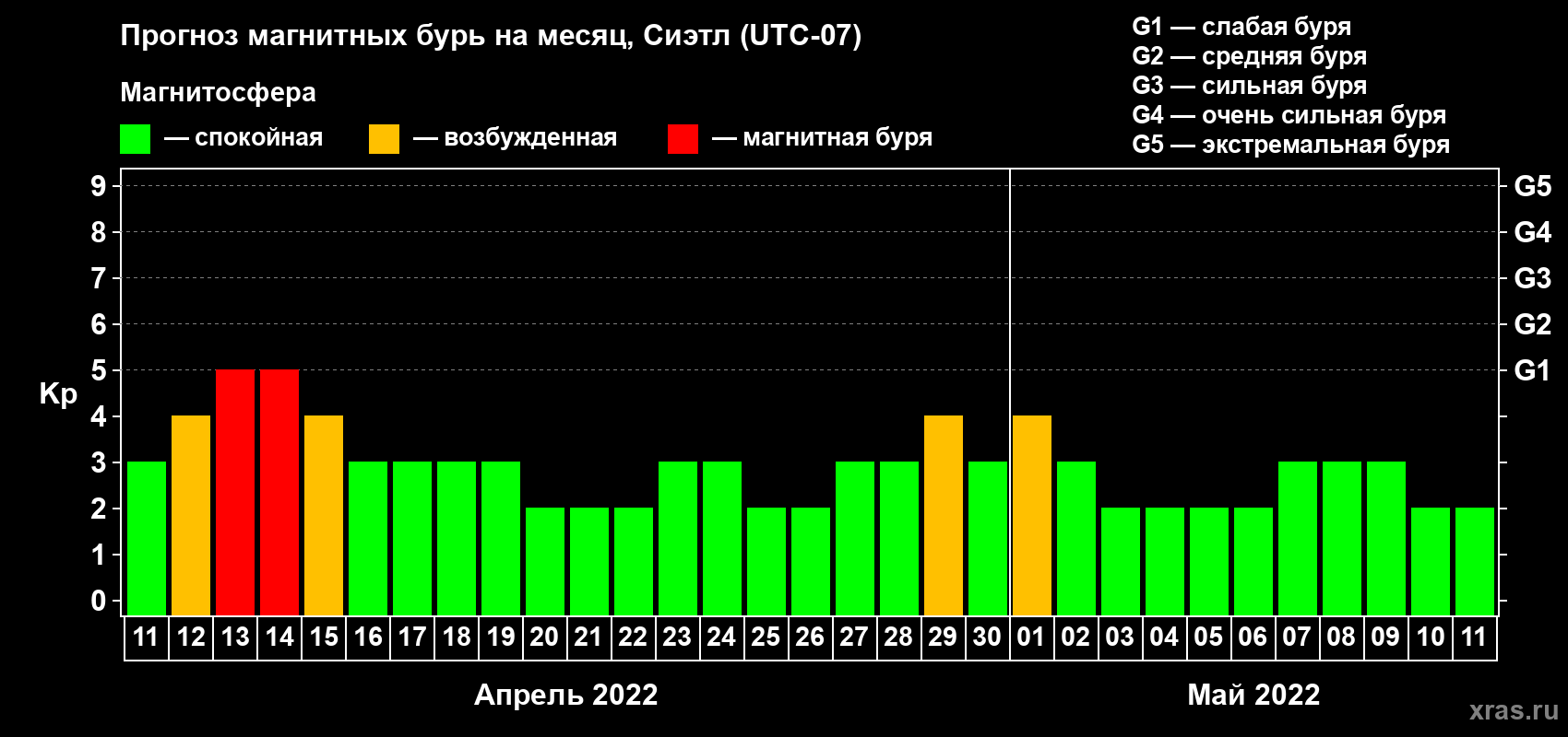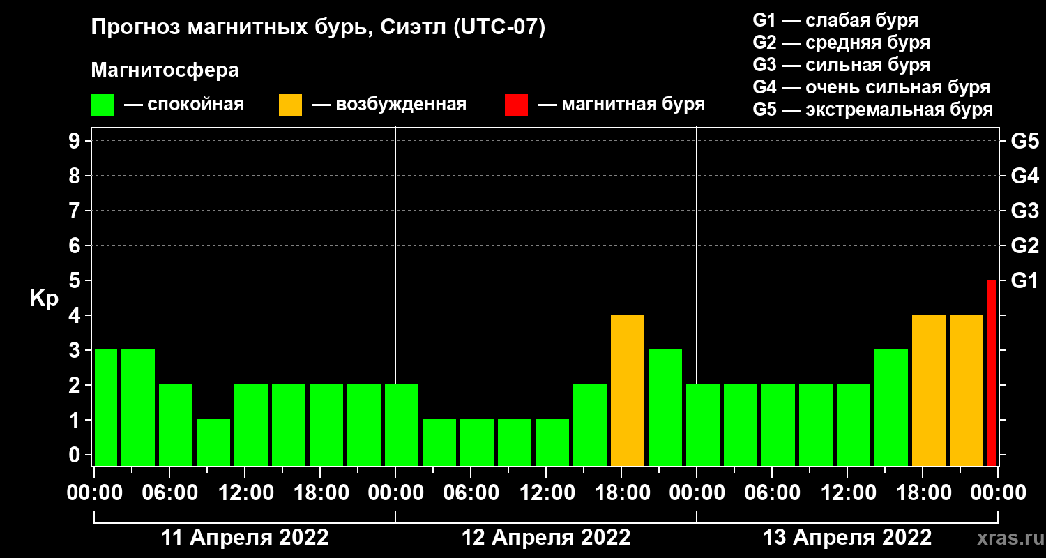 Прогноз магнитных бурь в Сиэтле — 11 апреля 2022 года