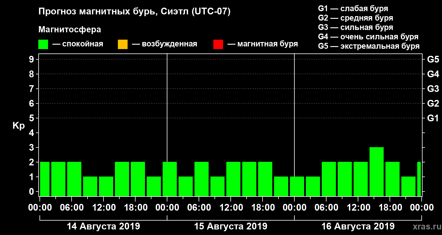 Прогноз магнитных бурь в Сиэтле — 14 августа 2019 года