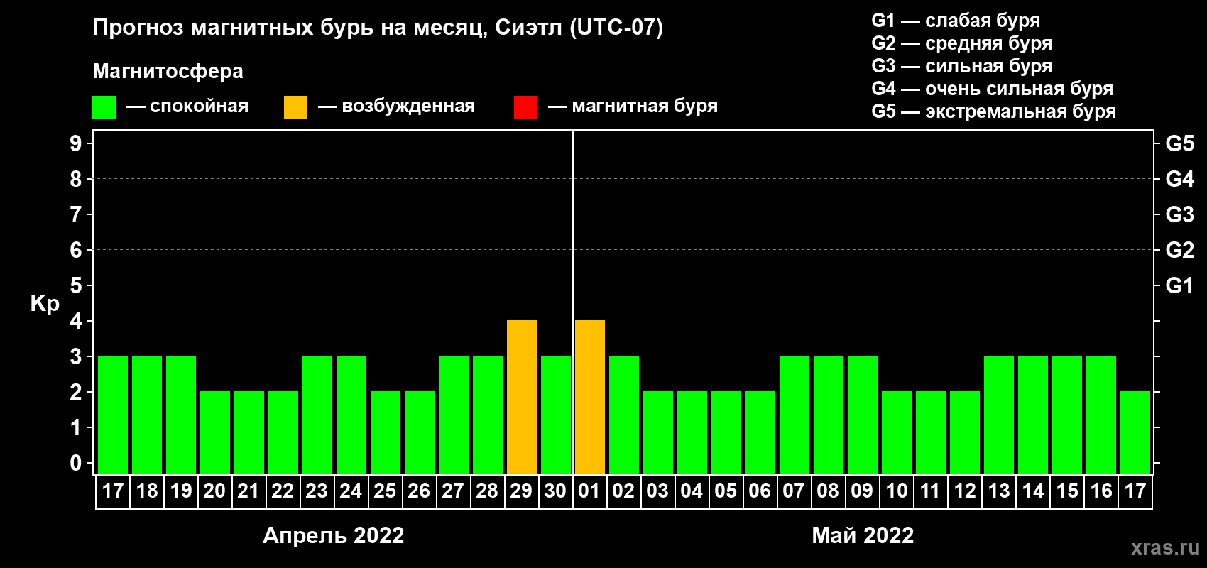 Прогноз магнитных бурь в Сиэтле — 17 апреля 2022 года