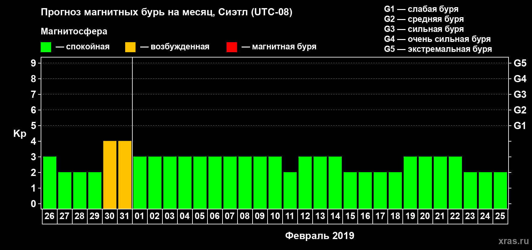 Прогноз магнитных бурь в Сиэтле — 26 января 2019 года