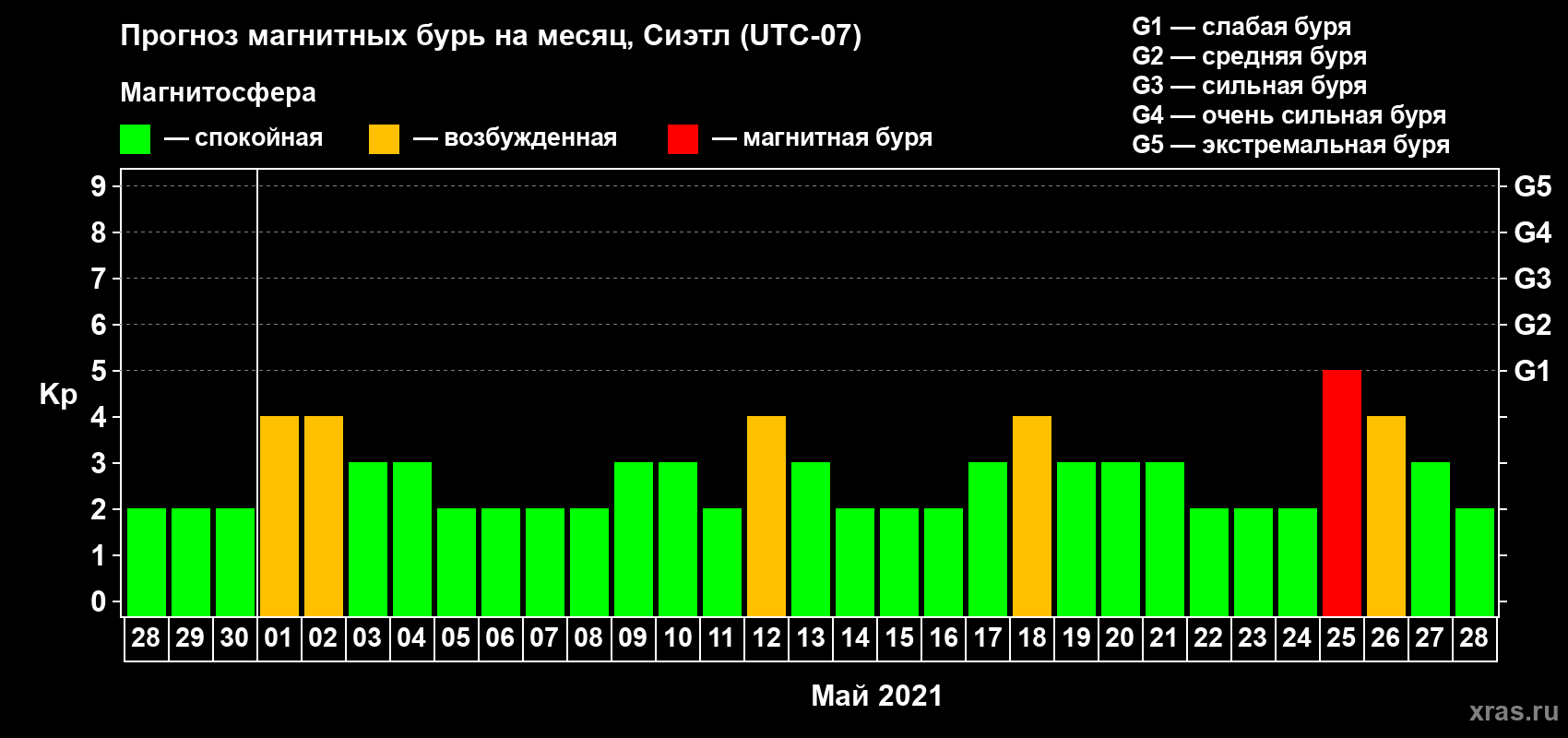 Прогноз магнитных бурь в Сиэтле — 28 апреля 2021 года