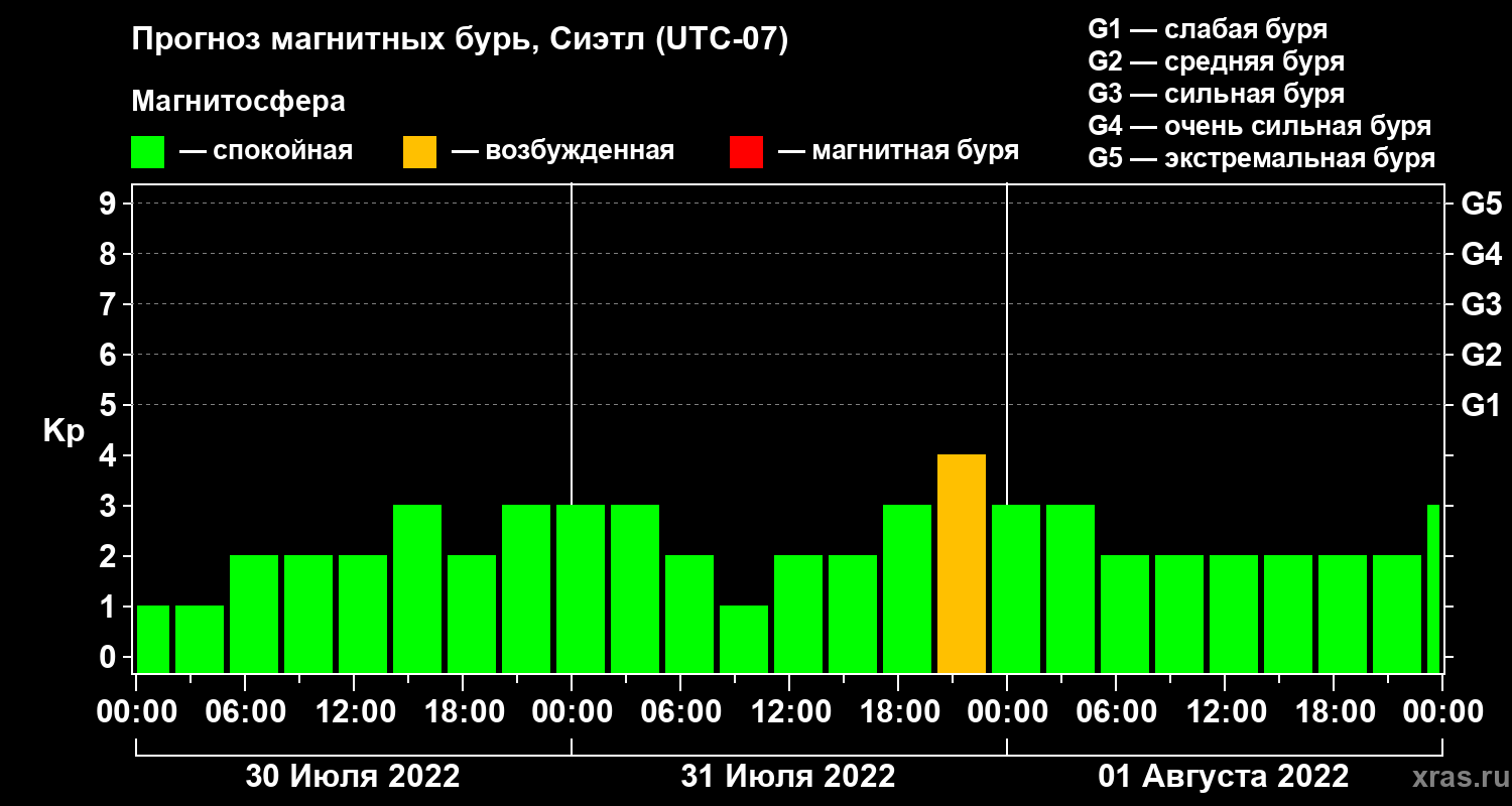 Прогноз магнитных бурь в Сиэтле на 30 июля 2022 года